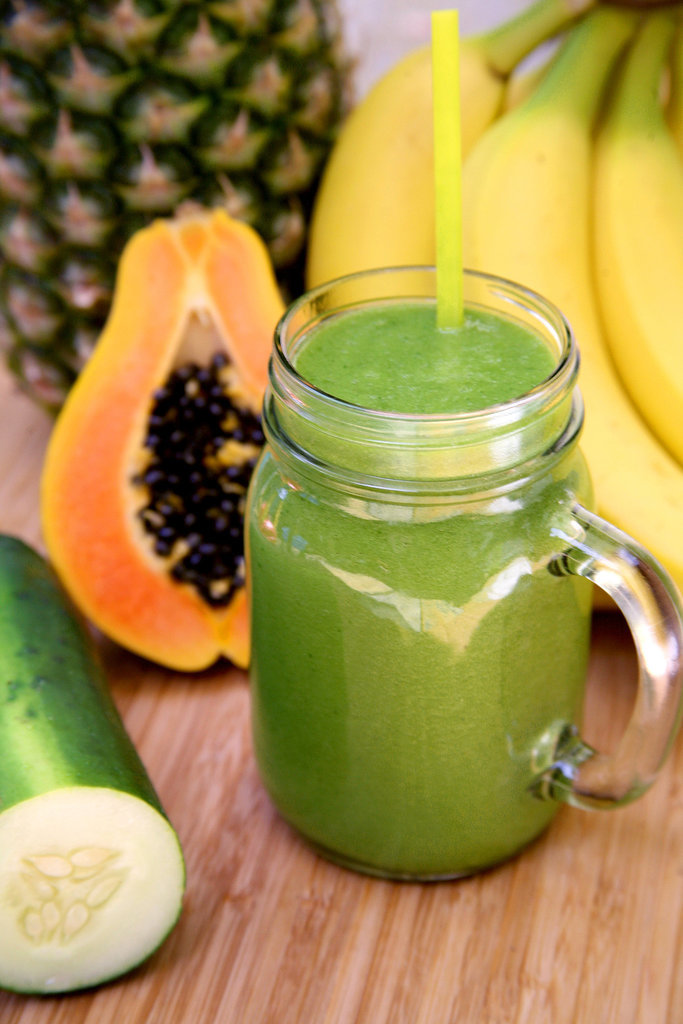 If you've had a big night out or are just feeling a little overstuffed, wake up with this debloating papaya smoothie. Filled with enzymes to aid in digestion as well as potassium to help flush out excess sodium, this smoothie will help you start your day right and feel a little lighter as well.